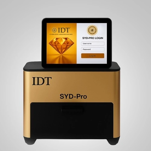 The SYD Machine Series is IDT’s proprietary diamond authentication technology designed to deliver laboratory-grade accuracy in everyday jewellery environments. Bringing together advanced optical engineering, multi-UV fluorescence evaluation, and AI-assisted interpretation, SYD machines provide fast, decisive identification of Natural, Lab-Grown, Treated and Simulant stones — whether loose, polished, or mounted.
